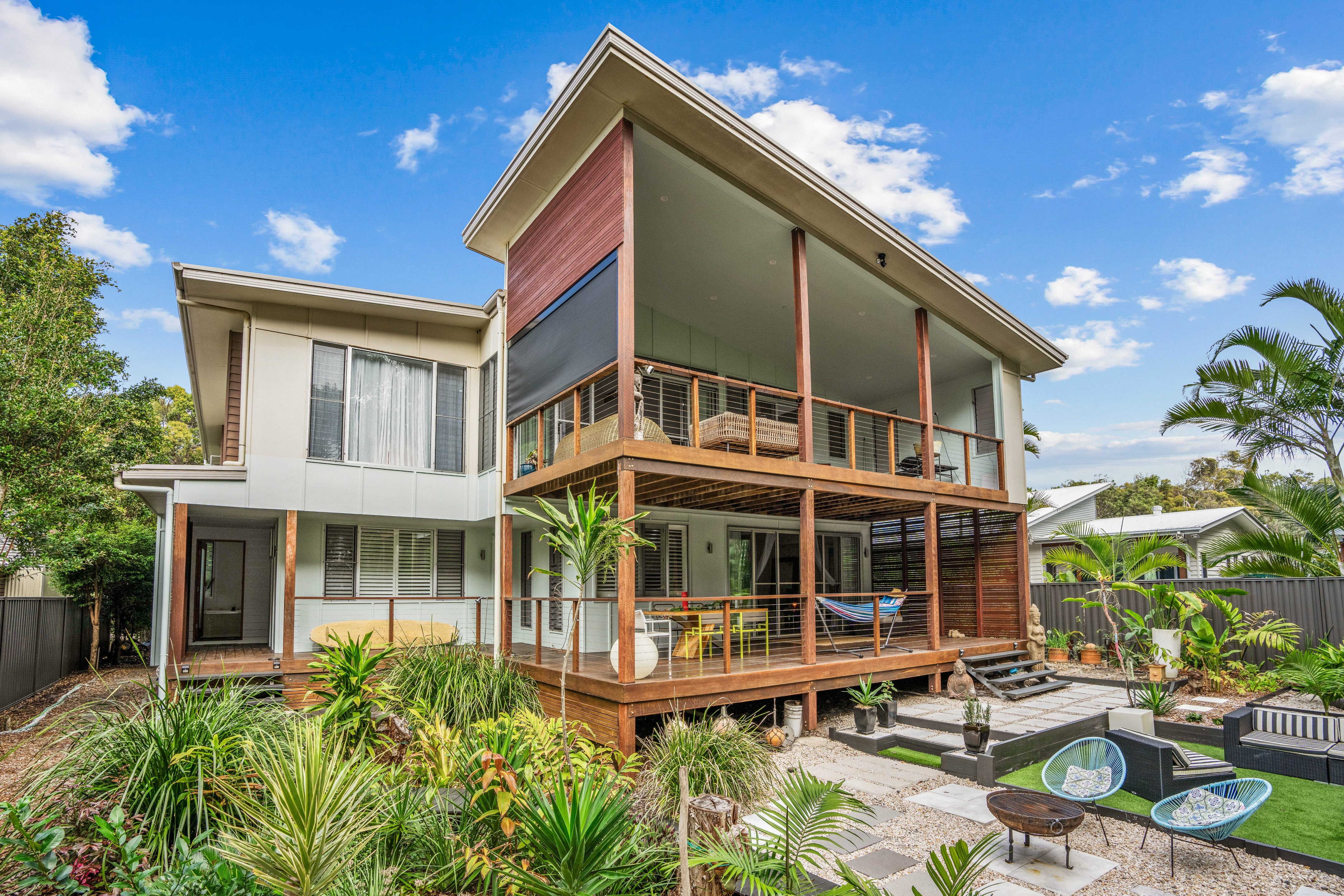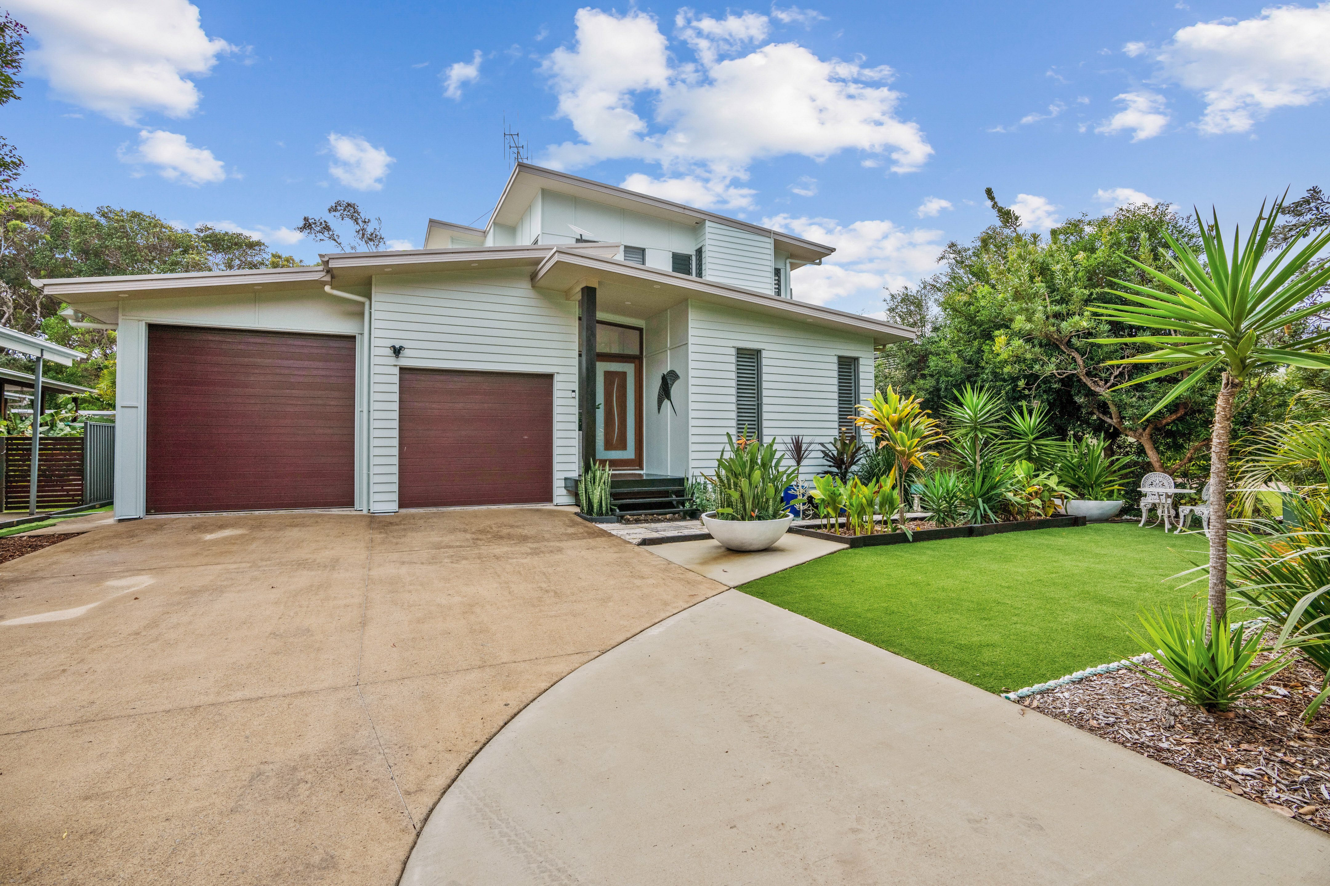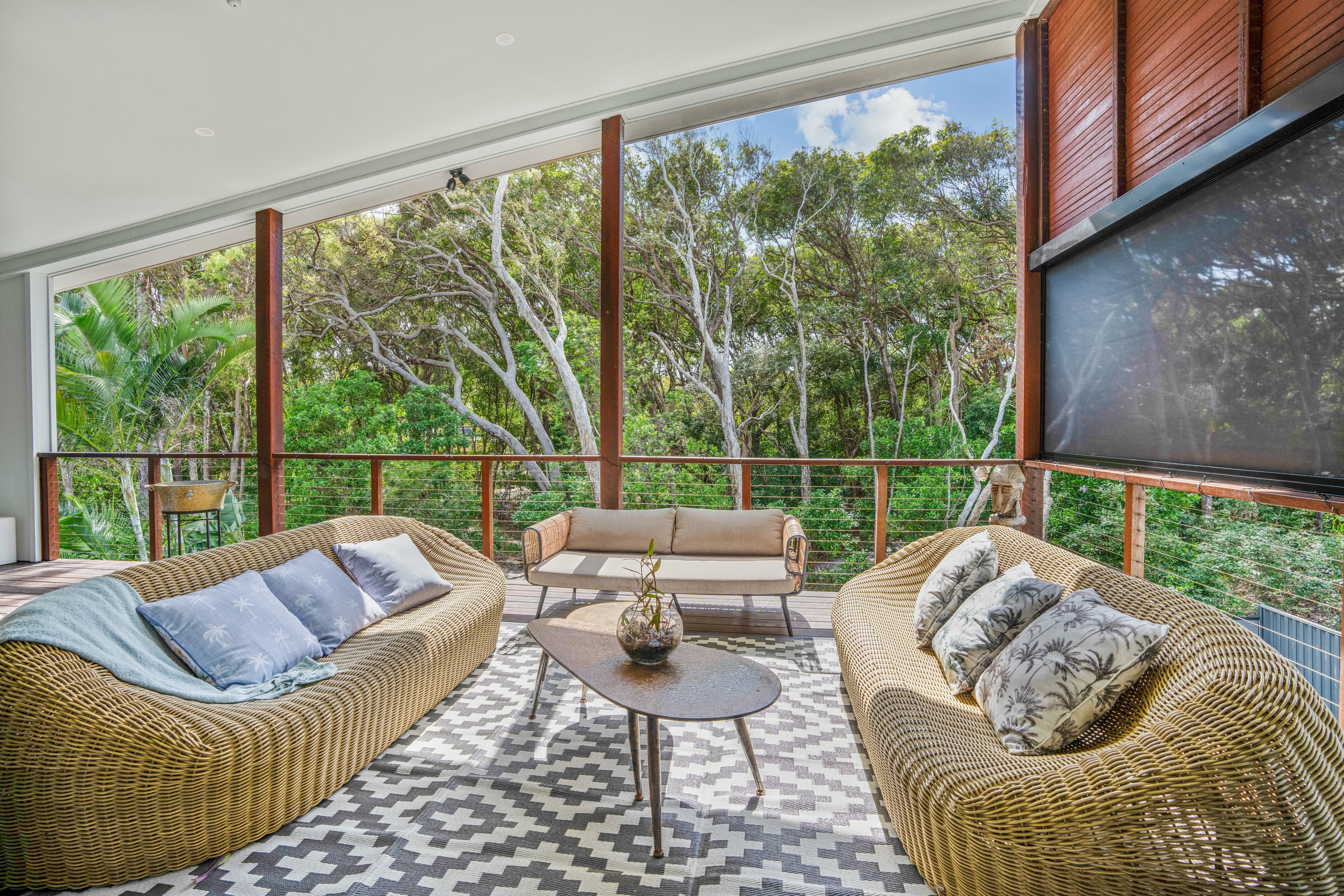 Refined coastal living, Executive beach house Beautifully presented and situated just metres away from the stunning Rainbow Beach. Only a few minutes' walk via a bush track to the shoreline, you can enjoy the best of beachside living here.