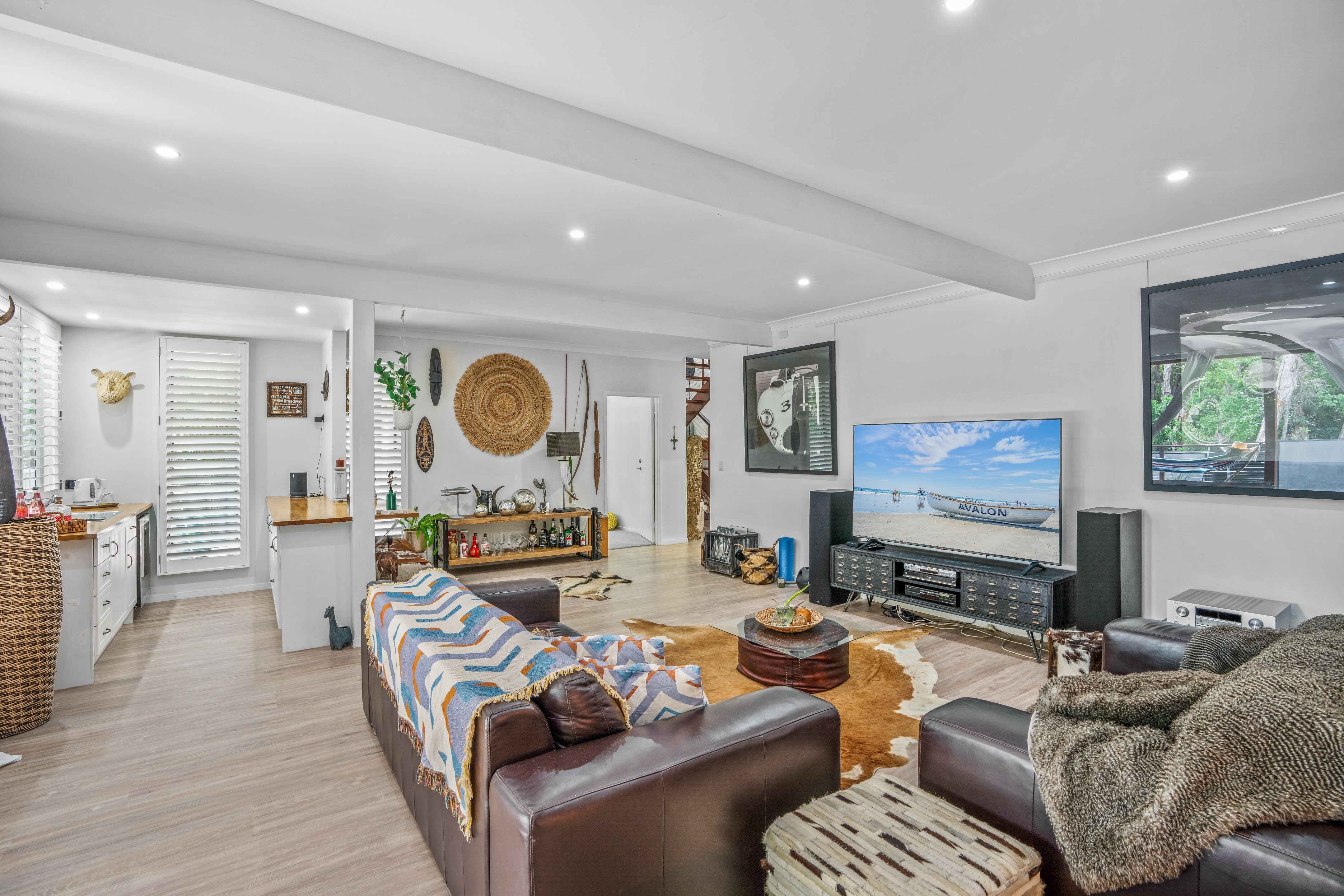 Downstairs boasts an oversized rumpus room area with a kitchenette and this area also opens out onto a big back deck. Three additional bedrooms are also located downstairs, and each has built-in wardrobes, ceiling fans and air conditioning. The main/family bathroom has both a shower and bath and can be easily accessed from the back deck for when you're coming back from the beach, making it super practical.