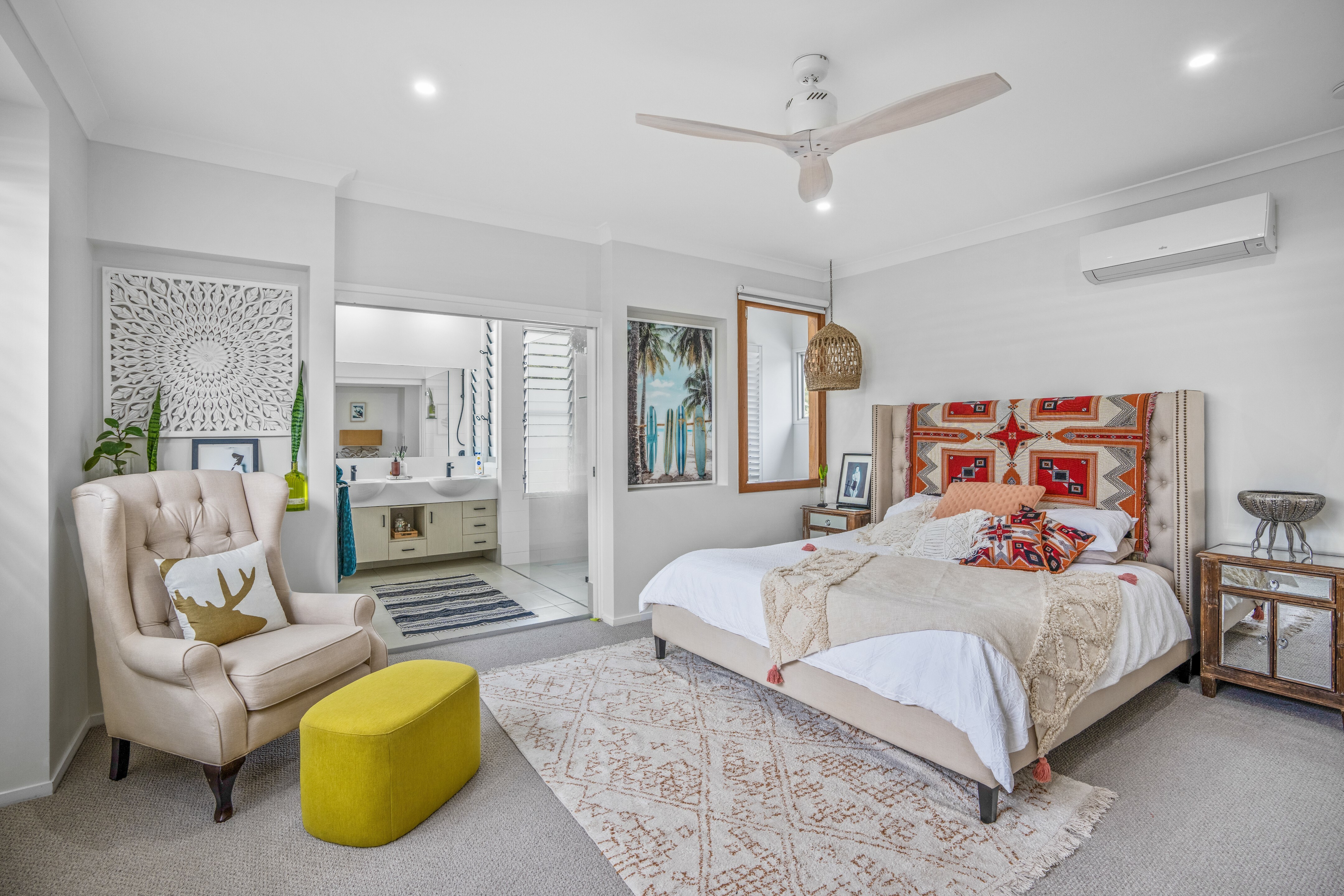 The master bedroom has plenty of space and natural light with a generously sized ensuite, large walk-in-robe, ceiling fans and air conditioning. There is also a study nook/office area located on the top level.